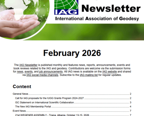 GGOS, IAG, 📰 General NewsSince June 2025, IAG news is centrally published as blog posts on the new website. Updates are available via mailing lists, social media, RSS feed, and a monthly PDF Newsletter. The redesigned PDF Newsletter (since January 2026), now issued by the IAG Secretariat at BEV in Austria, summarizes key developments and is accessible online and via the Journal of Geodesy.